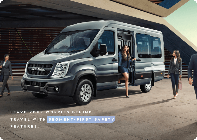 Introducing the Urbania by Force Motors. A vehicle so capable and versatile, it can transform to suit the needs of every type of customer, whether as a shuttle van for the senior managements commute, or as a tour van for the most elite vacationers. Treat your clientele to a truly world-class drive with best-in-segment standards of safety.