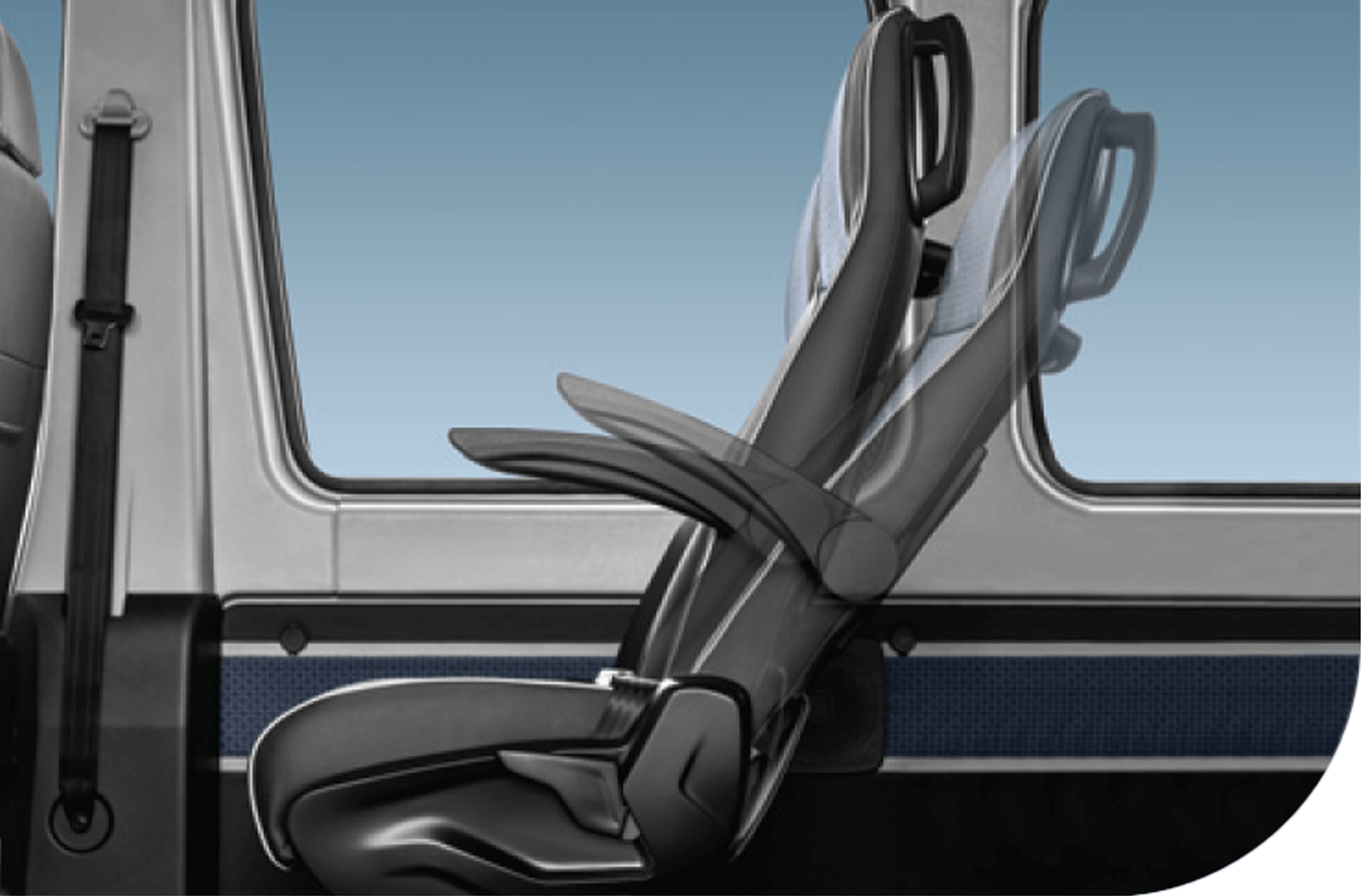 The perfect torso angle, seat depth and lumbar support provide ample support, resulting in minimal strain on the passenger’s thighs and back. Passengers can stretch their legs freely and enjoy a fatigue-free riding experience.